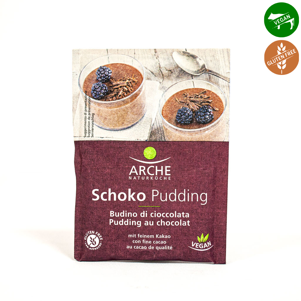 Този био пудинг на прах не съдържа глутен и ви кара да жадувате за сладко само докато го приготвяте. Шоколадовият пудинг е много вкусен като десерт или като междинна закуска. Съдържанието на пакетчето е достатъчно за 500 ml мляко или растителна напитка. Смесете 6 с.л. от пудинговата смес с мляко или зеленчукова напитка и добавете 2 с.л. подсладител по избор. Останалото мляко сложете да заври. Когато млякото заври, добавете пудинговата смес и оставете да заври за кратко, като разбърквате. За да стегне, изсипете пудинга в студена купа и оставете да изстине поне 2 часа. Опаковката подлежи на рециклиране.