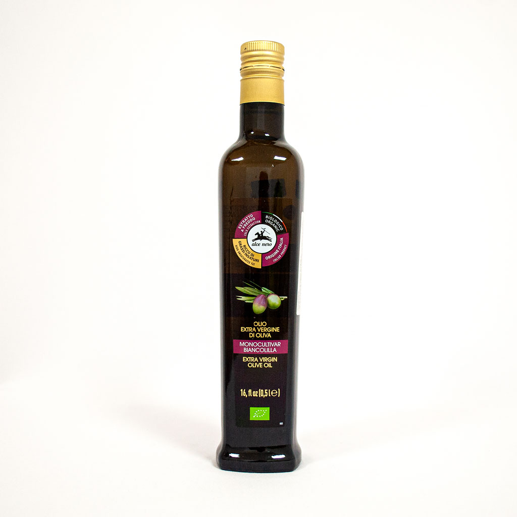 Този екстра върджин зехтин на Alce Nero се произвежда изключително само от маслини сорт Biancolilla. Сламено жълт със златисти нюанси и аромати, вариращи от артишок до домат и свежа трева. Съчетава се добре със сурови и варени зеленчуци, супи и риба на скара. Зехтин Biancolilla се произвежда от кооперацията AIP OLIVO S.C.A.p.A. в Палермо. Маслините се берат между октомври и януари, ръчно и с помощта на механични средства, за да се сведат до минимум щетите, които плодовете могат да понесат. След като бъдат събрани, маслините се изпращат в пресата, където започва производственият процес, превръщайки маслините в зехтин чрез студено пресоване.