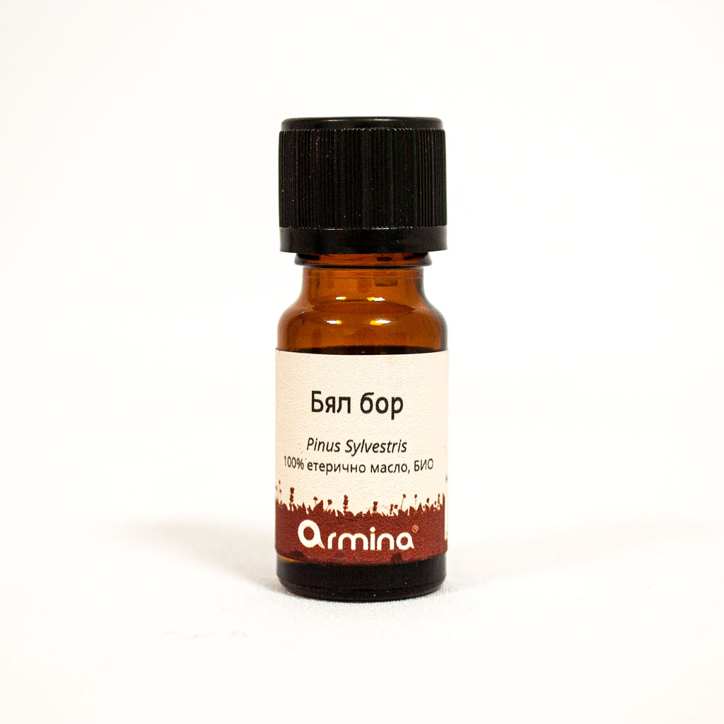 Етеричното масло от бял бор намалява последствията от напрежението и стреса. Има положително въздействие при проблеми с простатата, цистит и хепатит. Използва се за освежаване и ароматизиране на помещения, тъй като притежава свеж, горски аромат. Произведено е чрез парна дестилация на пъпките на бял бор.