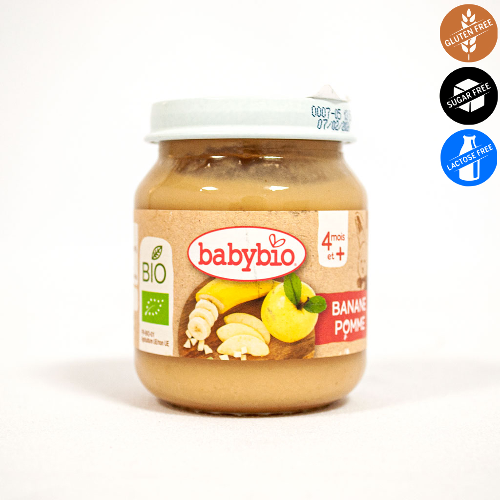 БИО плодово пюре ябълка и банан след 4-тия месец 130 g, Babybio