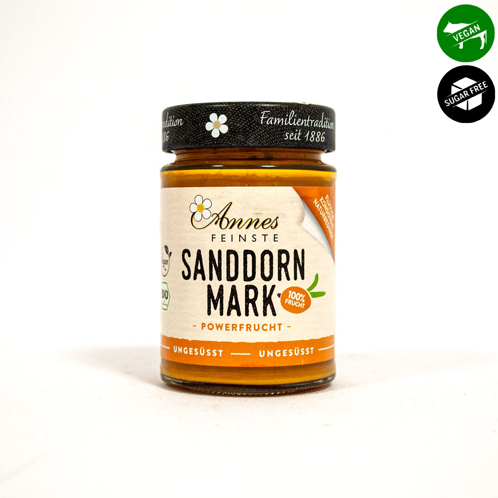 Чисто плодово удоволствие – морският зърнастец(облепиха), наричан още лимонът на севера заради високото си съдържание на витамин С, се характеризира с тръпчив, кисел, много освежаващ вкус. Пюрето съдържа 100% органични плодове от морски зърнастец и може да се подслади по желание. Няма добавена захар, веган е и може да се използва по различни начини. Към мюсли за закуска, към кисело мляко, за печива.