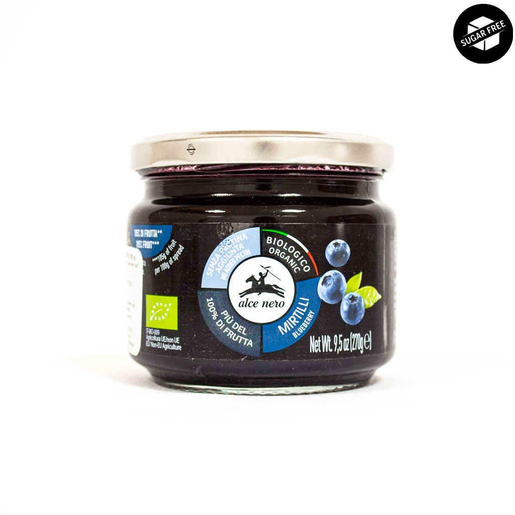 Органичното сладко на Alce Nero се характеризира с интензивен и сладък, леко кисел вкус. Произведено е от органични боровинки и без добавен пектин или захар.
