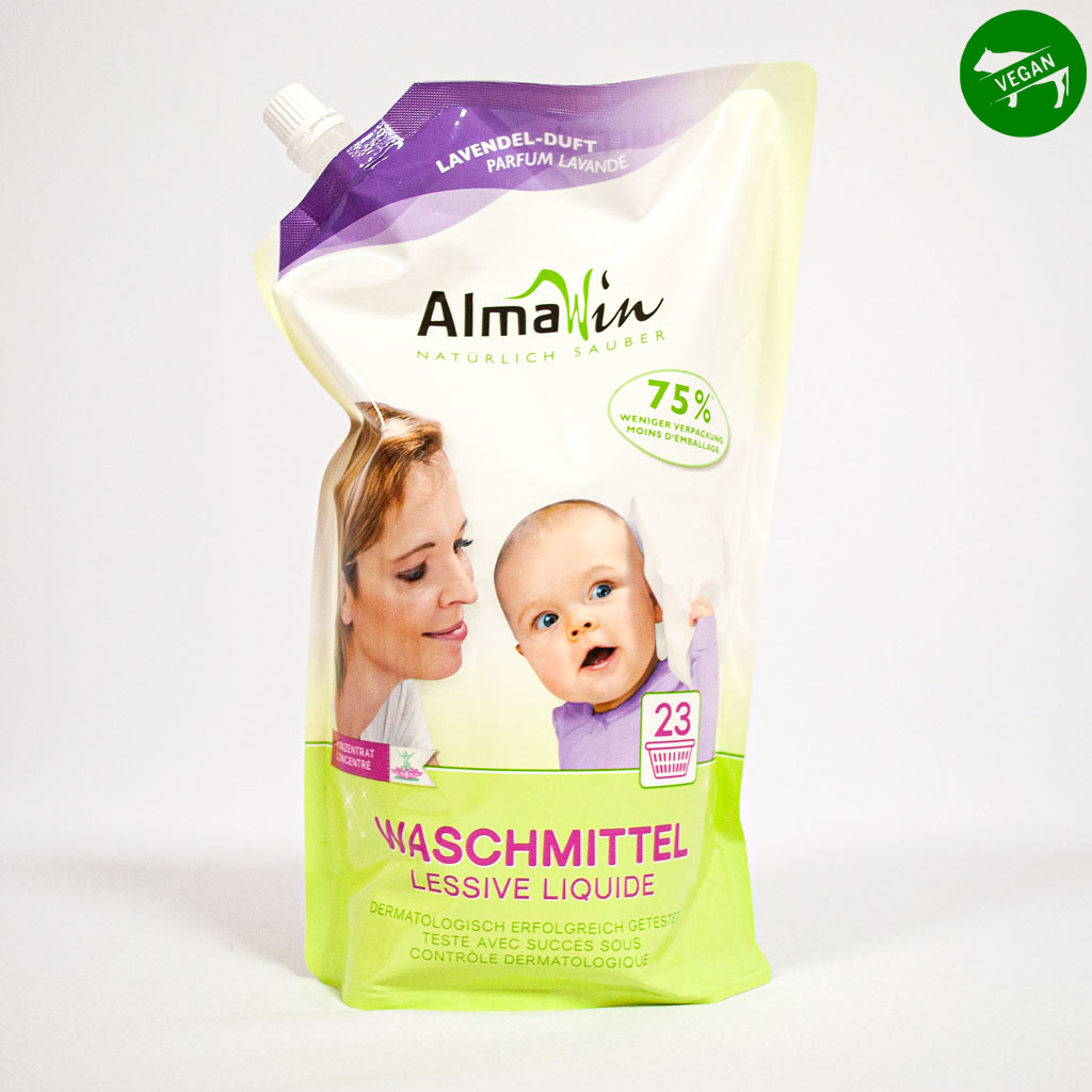 Родителите бързо научават, че е необходимо (почти) ежедневно пране, за да не се препълни кошът за пране. Тъй като честото миене не само вреди на околната среда, но също така може да раздразни кожата, течният перилен препарат AlmaWin е особено нежен. Може да се използва както за пералня, така и за ръчно пране. Може да се използва както при пълно пране, така и при деликатни цикли на пране. Подходящ за пране при температури между 30 °C и 95 °C. Не е подходящ за вълна и коприна.