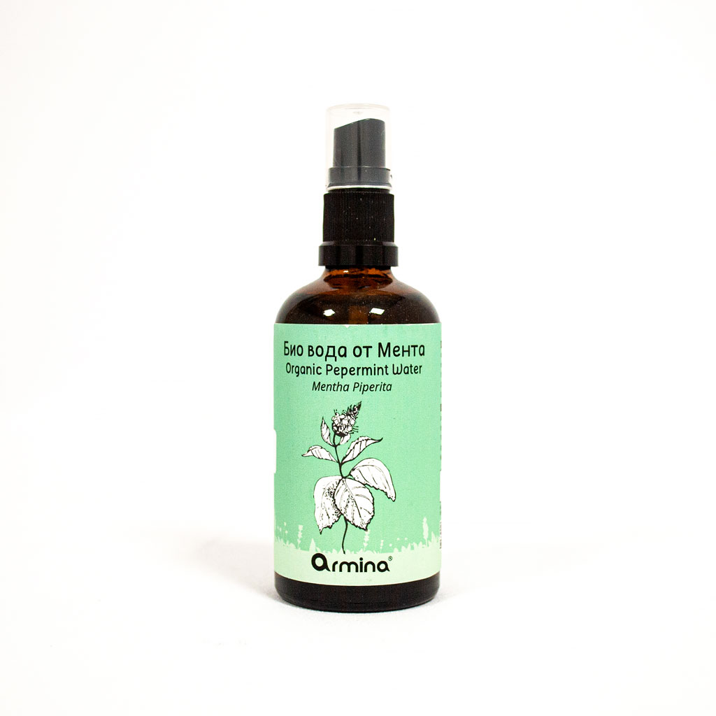 Флоралната вода от мента на Армина Био притежава мощно освежаващо, почистващо и антигъбично действие. Предотвратява пъпки и зачервявания, елиминира инфекции. Флоралната вода от мента оказва благоприятен ефект върху мазна, смесена и проблемна кожа като почиства, тонизира и освежава в дълбочина.