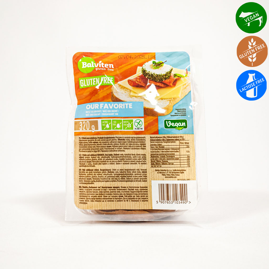 Съставки: Вода, царевично нишесте, оризово брашно, соев протеин, рапично масло, сгъстител: хидроксипропил метилцелулоза; ябълкови фибри, глюкоза, мая, грахови фибри, грахов протеин, сол, сгъстител: ксантанова гума; брашно от елда, брашно от просо.