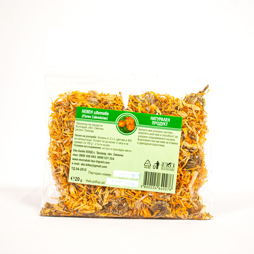Въздействие: Приемът има благоприятно въздействие върху вътрешните органи. Невенът има противомикробно действие и способност да ускорява заздравяването на раните. Като кръвопречистващо растение той е най-доброто средство при жълтеница. Билкта има доказано противомикробно действие и способност да ускорява заздравяването на рани. Благоприятства при язви на стомаха и дванадесетопръстника. Начин на употреба: Запарка от 2 с.л. цветове и 400 мл кипяща вода. Оставят се да киснат 2 часа и се приемат по 100 g – 2 пъти на ден. Съхранение: На сухо и прохладно място.